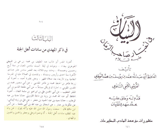Ref: Eqdud Durrar Fi Akhbar al Muntazar, tradition no 6 (click to view).