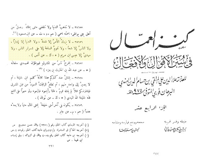 لا يزداد الأمر إلا شدة، ولا الدنيا إلا إدبارا، ولا الناس إلا شحا، ولا تقوم الاسعة إلا علي شرار الناس، ولا معدي إلا عيسي ابن مريم