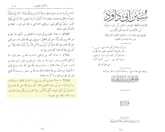 Ref: Sunan Ibne Dawood Ch Kitabul Mahdi, H No 2485 (click to view)