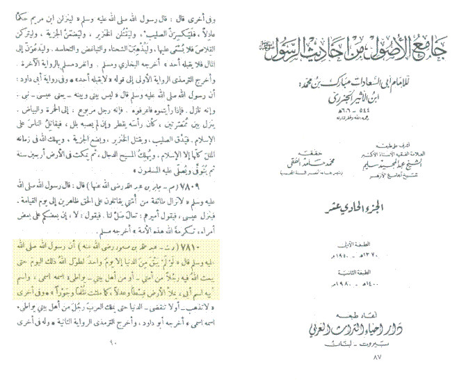 Ref : Jame’ul Usool Fi Ahadees Rasul , Ch 7810 (click to view)