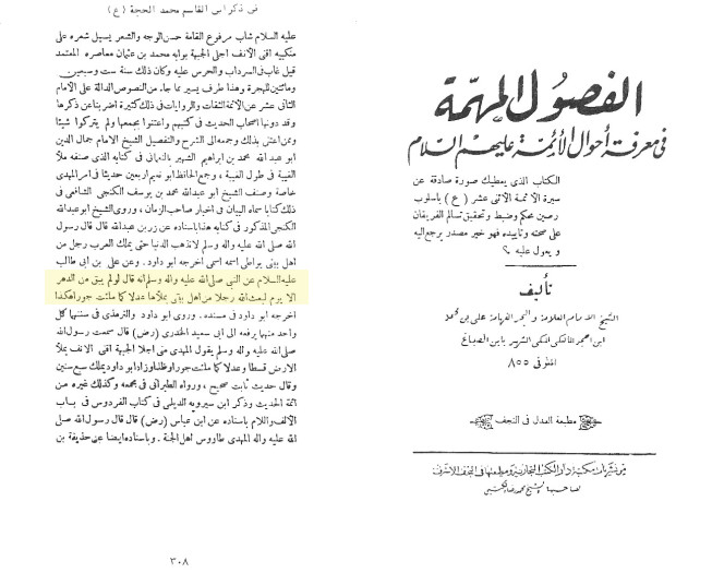 النبي صلي الله عليه وآله وسلم انه قال لو لم يبق من الدهر إلا يوم لبعث الله رجلا من أهل بيتي يملأ ها عدلا كما ملئت جورا هكذا