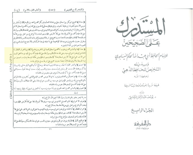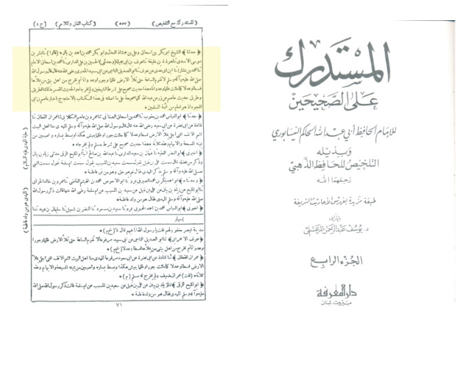 Ref: MustadrakAlaSahihain by Al Imam Al Hafiz Abi Abdullah Al Hakim Nisaburi (click to view).