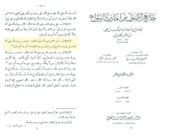 Ref : Jame’ul Usool Fi Ahadees Rasul , Ch 7812 (click to view)