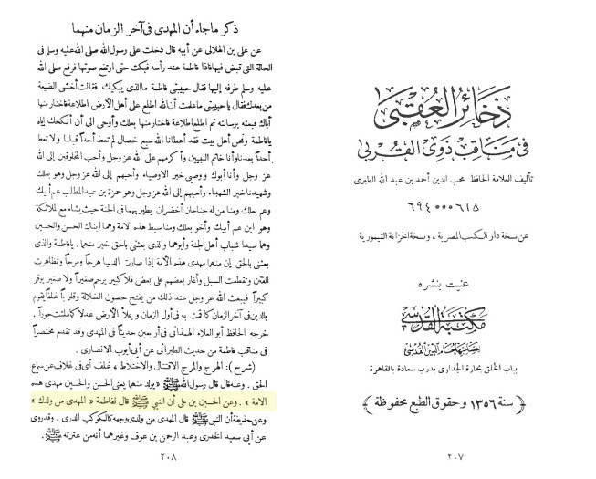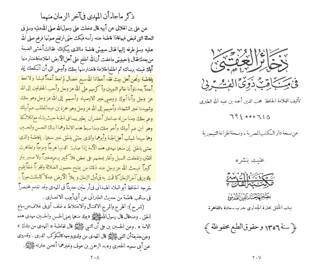 Ref : Zakhaerul Uqba Fi Manaqib Zawil Qurba (click to view).
