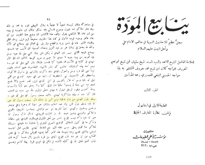 Ref: Eqdud Durrar Fi Akhbar al Muntazar H No 1 (click to view)